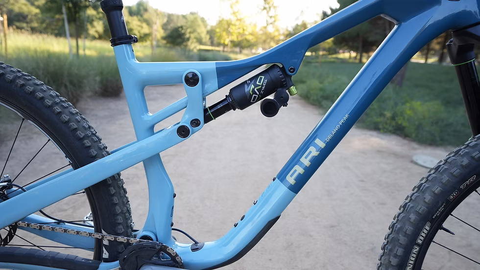 Right out of the box, the ARI Delano Peak looks like a bike designed for fun. It has modern geometry, an aggressive yet playful stance, and a full-carbon frame that keeps it lightweight yet sturdy. The frame itself feels well-constructed, and the bike’s suspension design immediately stands out as something that would excel in a variety of conditions.